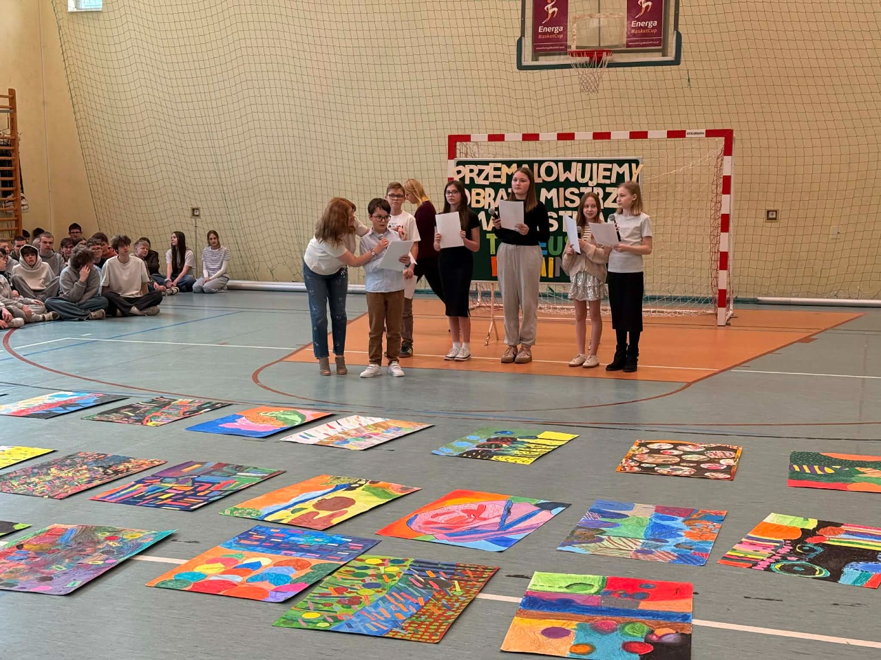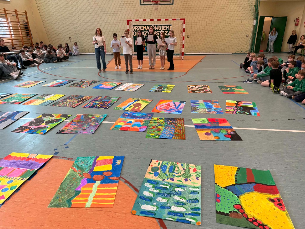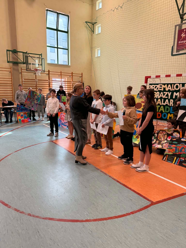 Dziś w naszej szkole odbył się wyjątkowy wernisaż prac uczniów klas 4, 5, 6 i 7, którzy wzięli udział w konkursie inspirowanym twórczością Tadeusza Dominika, malarza, o którego obrazach Zbigniew Herbert pisał, że „są jak ogniste koła, kwiaty, chleb, patyki”.