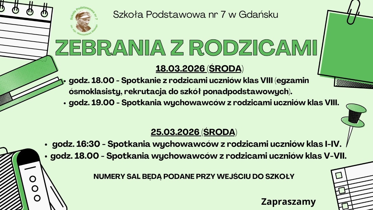 ZEBRANIA Z RODZICAMI - Szkoła Podstawowa nr 7 im. mjra Mieczysława Słabego w Gdańsku